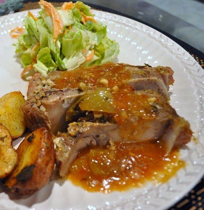 Roasted Pork Loin with Garlic and Potatoes Recipe